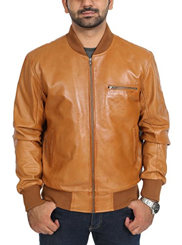 House Of Leather offer Mens Classic Bomber Leather Jacket ROB Tan Gents Fitted Baseball Coat (Medium). This awesome product currently limited units, you can buy it now for £199.00 £129.96, You save £69.04